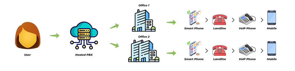 Virtual PBX solution uses a single terminal to manage all telephone business lines without making any alteration in the existing setup. There is no need to establish a new physical set up, virtual PBX service offers a plug-and-play system that helps you structure customized call routing solution for directing calls from any location to any department or agent’s extension whether it is a personal mobile, desk phone or desktop. Mobile users can take leverage of smartphone apps to replace smartphone’s ID with company’s caller ID and in-house employees can use VoIP desk phone or softphones to make and receive calls via cloud PBX.